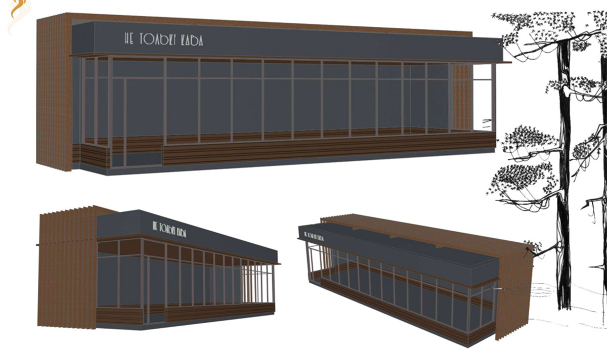 «Эскизные решения торговых павильонов разработаны с учетом размещения на территории историко-культурной ценности с применением деревянных элементов, как преобладающего аутентичного материала. Тем самым решается задача скрыть торговлю, без которой не представляется полноценное функционирование современного парка».
