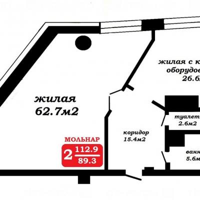 Площадь по СНБ 53 м2. Высота потолка 3 м.